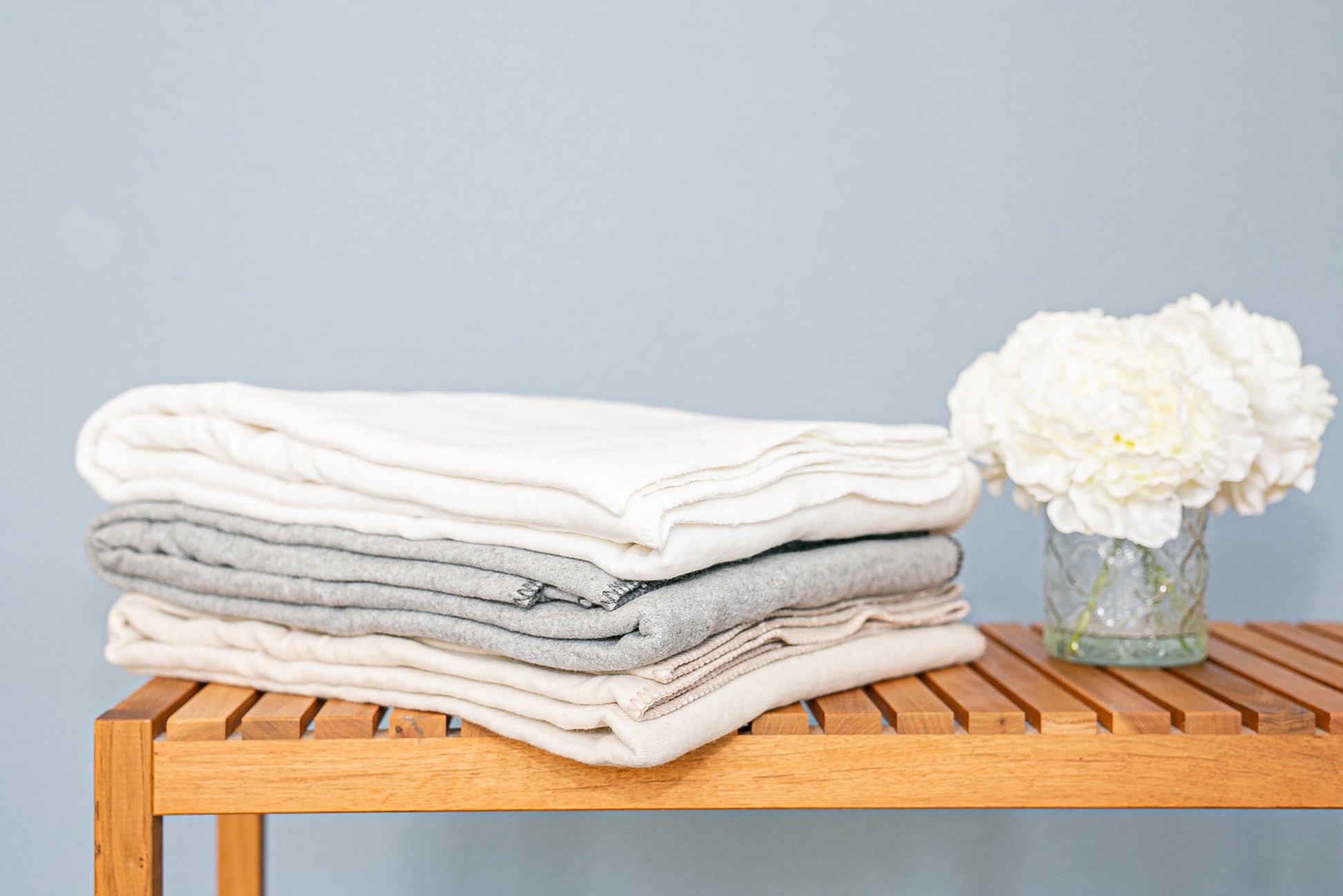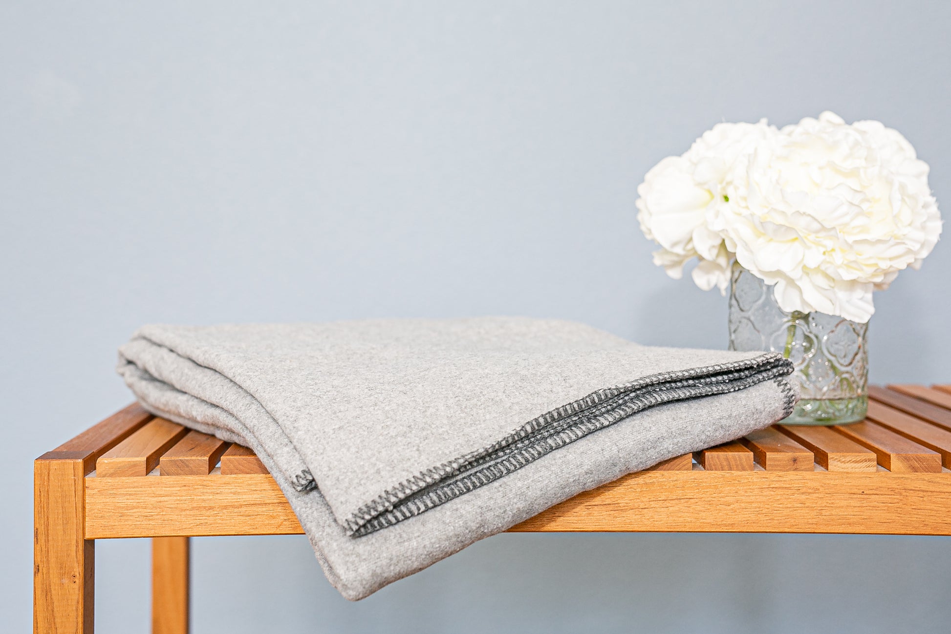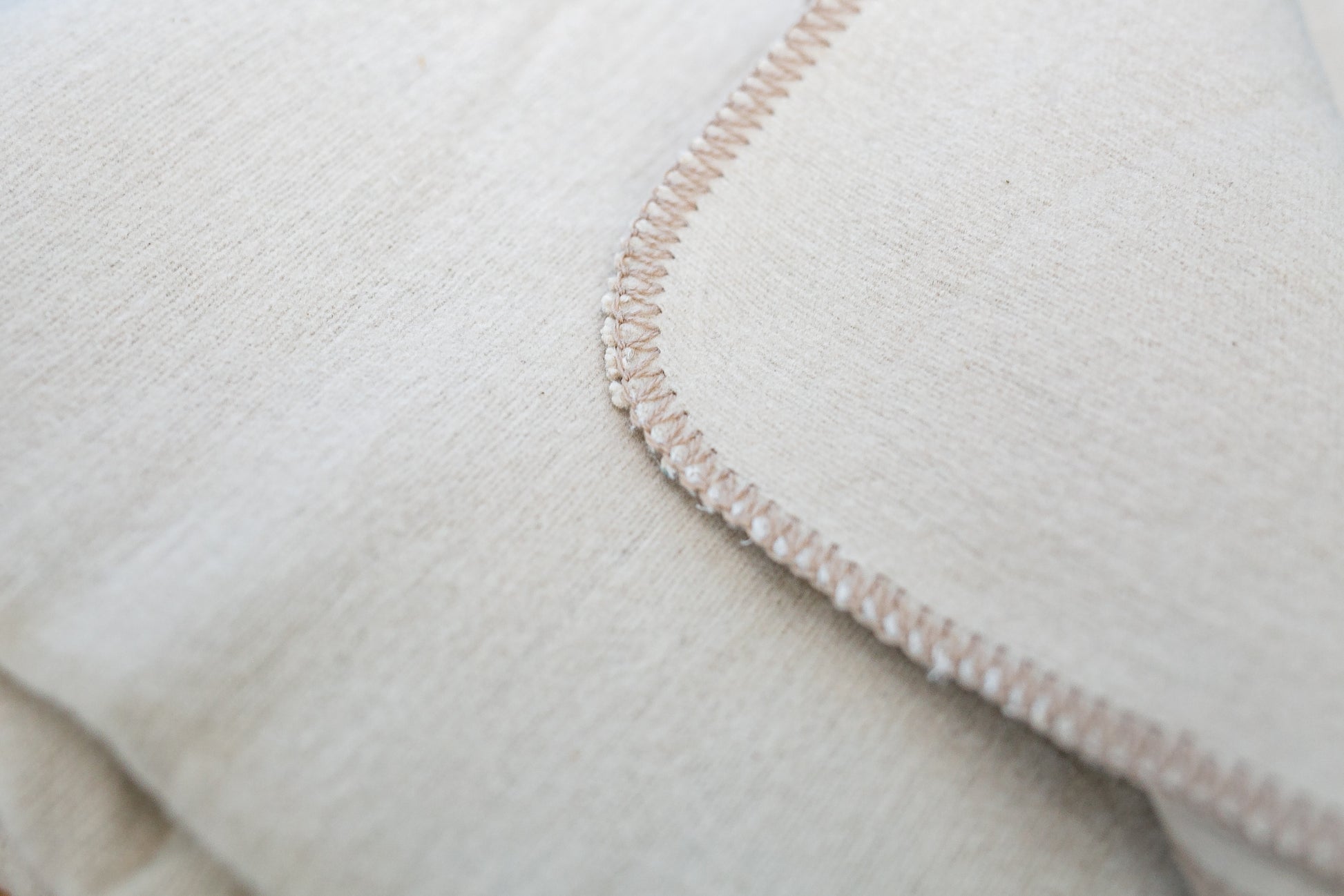 Soft Spanish long staple cotton throw, with blanket stitch edge.